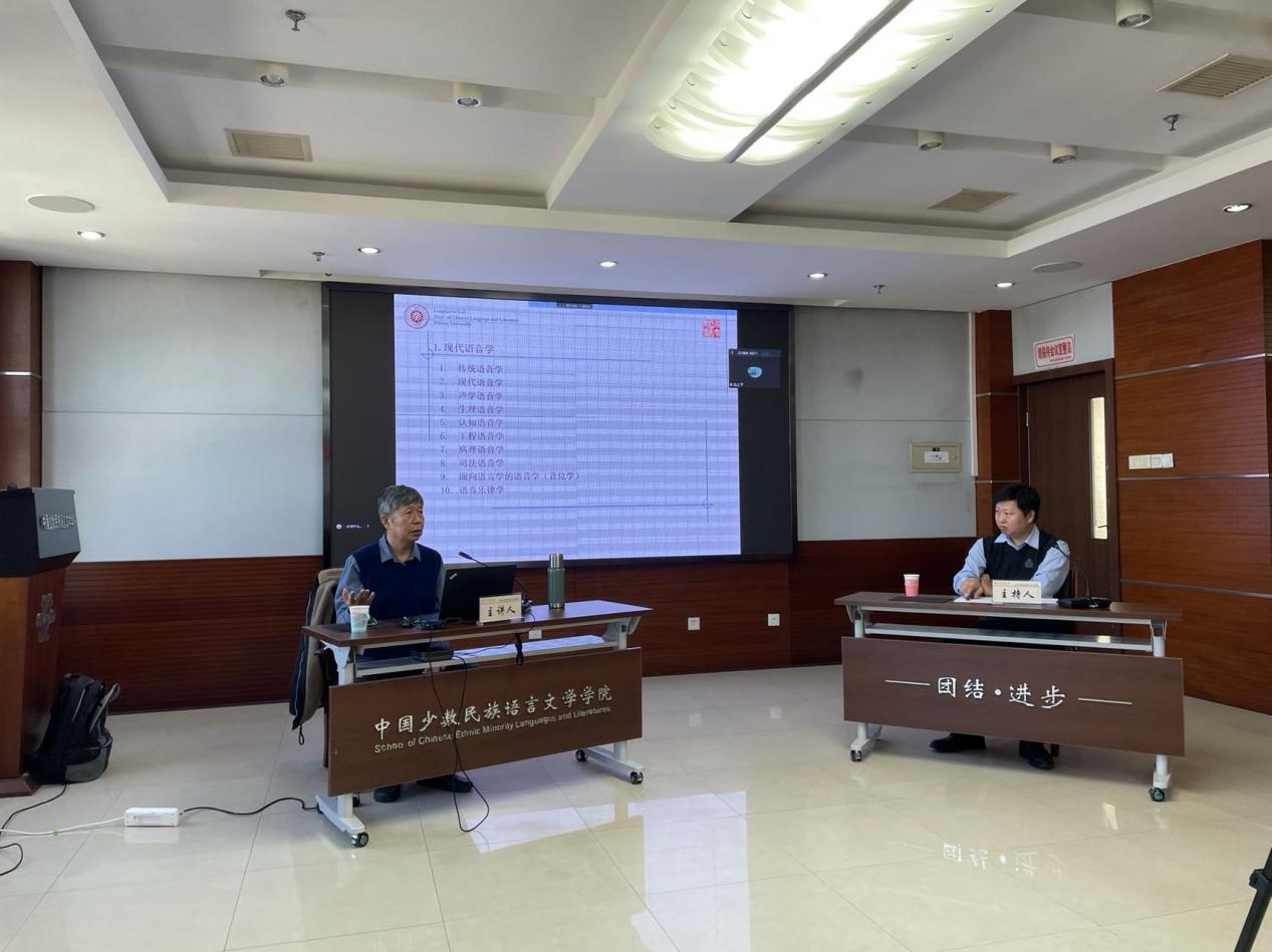 20121年12月3日下午,北京大学中文系孔江平教授受中国少数民族语言文学学院邀请,在澳门银河集团海淀校区文华楼1446会议室进行了学术交流活动。讲座采取线上和线下相结合方式进行,由金青龙副院长主持讲座。