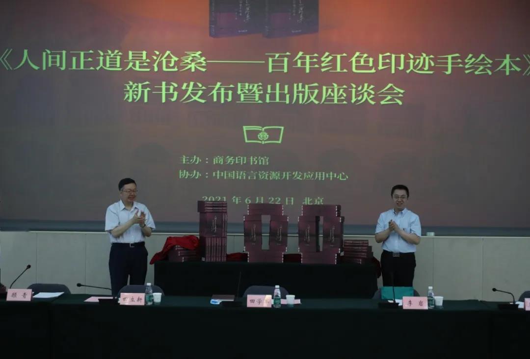 为庆祝建党百年,由国家语委组织编写,教育部高等学校社会科学发展研究中心执笔编写,商务印书馆出版的党史作品《人间正道是沧桑——百年红色印迹手绘本》,在商务印书馆举办新书发布暨出版座谈会。教育部副部长、国家语委主任田学军出席会议并讲话。