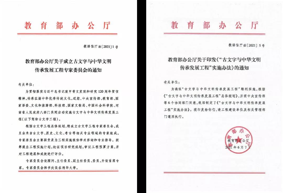 为规范工程管理,完善工作机制,教育部办公厅先后印发《关于成立古文字与中华文明传承发展工程专家委员会的通知》《关于委托清华大学作为古文字工程联合攻关协同平台牵头单位的函》《古文字与中华文明传承发展工程实施办法》等系列文件,古文字工程部门协同机制办公室、工程秘书处印发《古文字与中华文明传承发展工程实施计划(2021-2025)》,搭建起工程建设的四梁八柱,工程实现良好开局。
