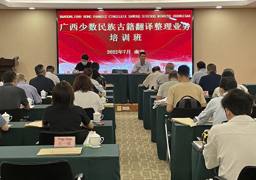 据悉,本次培训为期两天,主要围绕壮族古籍翻译的理论与实践、少数民族古籍的搜集和整理、民族古籍类图书出版的政策把握和选题设置、少数民族古籍翻译整理中的字表应用等内容进行专题授课。培训还将开展翻译整理操作实践,并就少数民族古籍抢救搜集内容和区域重点、翻译整理工作的普遍性问题及对策措施、各古籍翻译整理出版工作、少数民族古籍数字化建设开展座谈交流。
