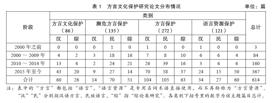 表1 方言文化保护研究论文分布情况