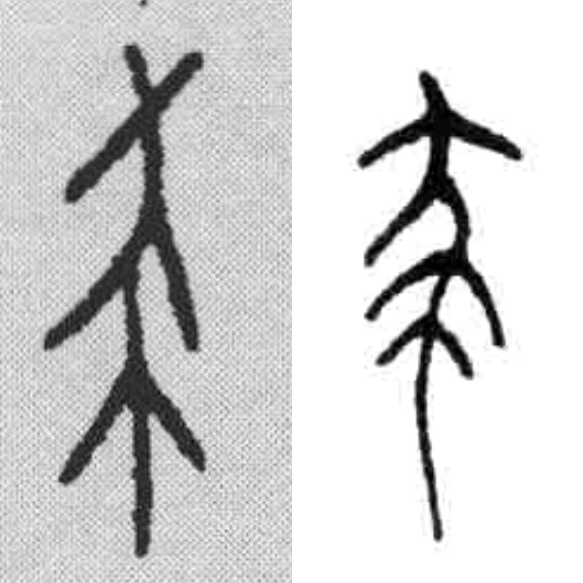 甲骨文、金文的杀。乍一看,不知道是什么。但只要从中拎出“大”,就清楚了,“大”的一条腿上有刑具。金文里,为便于书写,将戴刑具的腿拉长了。